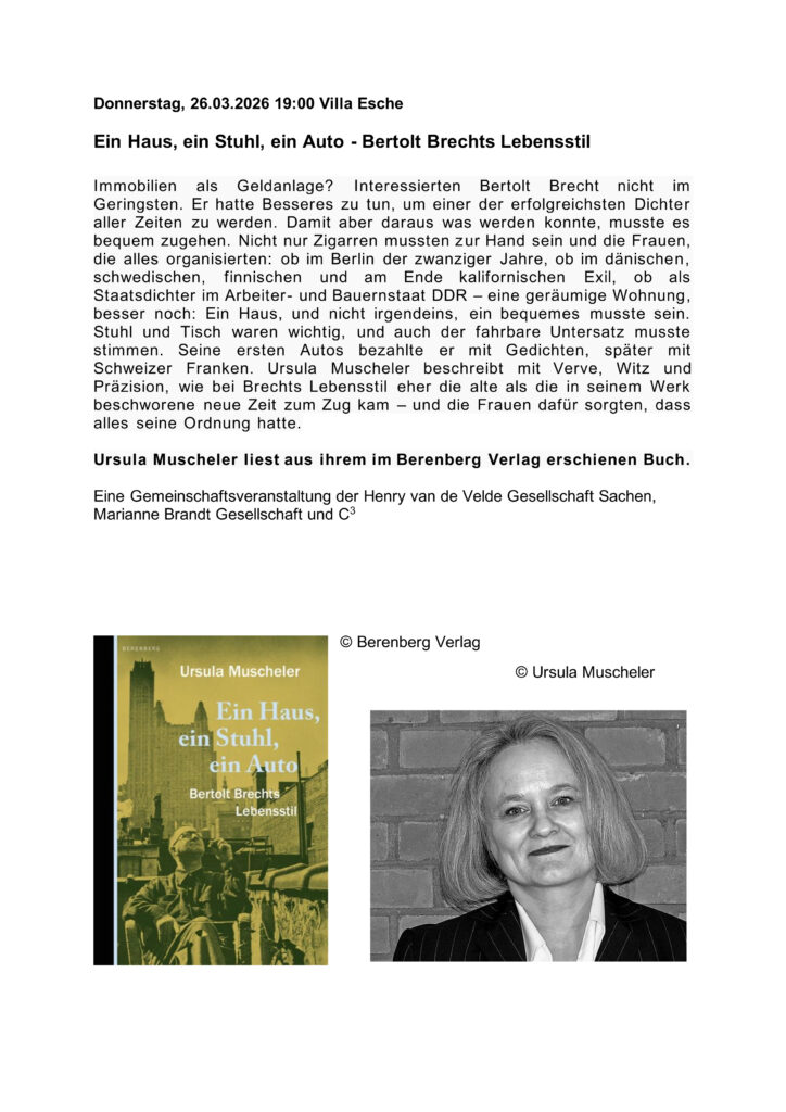 26. März 2026 – Lesung: Ein Haus, ein Stuhl, ein Auto – Bertolt Brechts Lebensstil